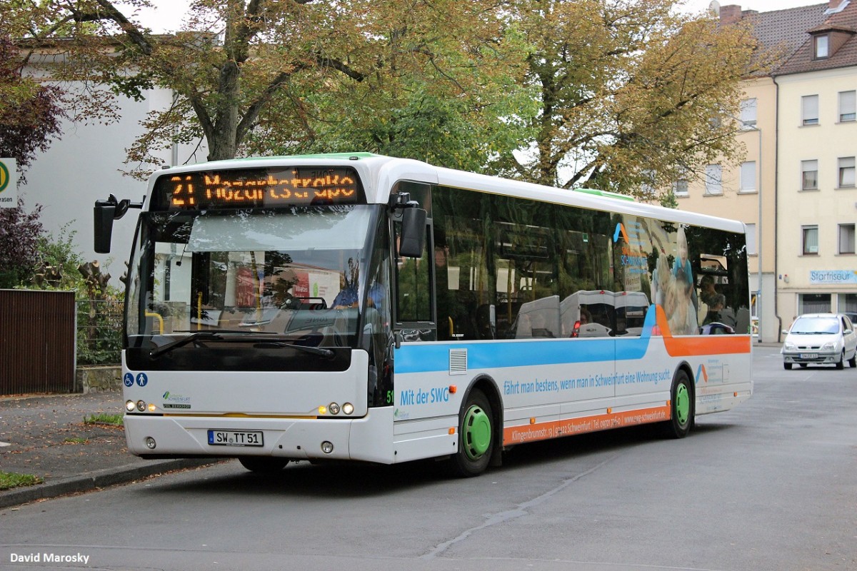 5 August 2014 - Schweinfurt, Schlemsrasen ein in Deutschland eher seltener VDL Berkhof Ambassador 200 (Baujahr 2011) der Stadtwerke Schweinfurt auf den Weg zur Mozartstraße.