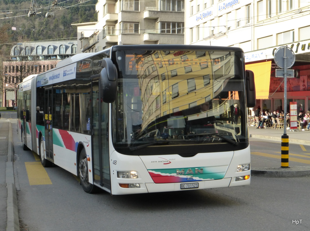 asm Seeland - MAN Lion`s City Nr.48 BE 703521 unterwegs auf der Linie 72 in der Stadt Biel am 21.12.2014