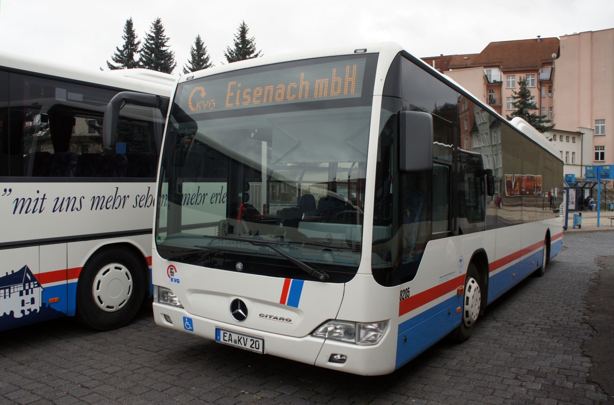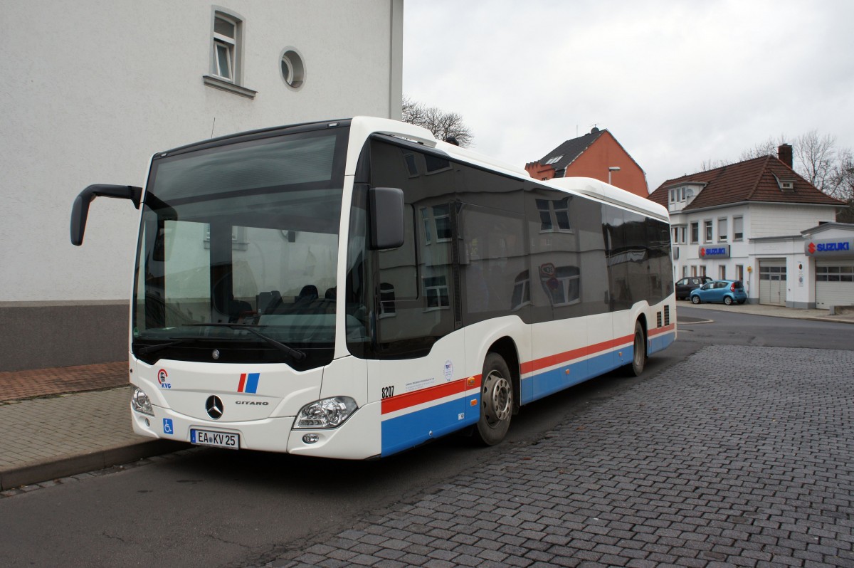 Stadtbus Eisenach: Mercedes-Benz Citaro C2 der KVG Eisenach, eingesetzt im Stadtverkehr. Aufgenommen am Stadtbusbahnhof von Eisenach im Dezember 2014.