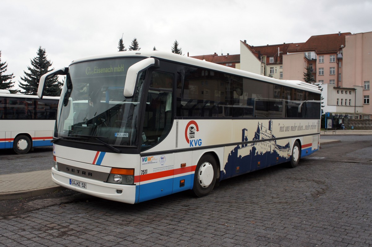 Bus Eisenach / Verkehrsgesellschaft Wartburgkreis mbH (VGW): Setra S 315 UL-GT der KVG Eisenach, eingesetzt im Überlandverkehr. Aufgenommen am Überlandbusbahnhof von Eisenach im Dezember 2014.