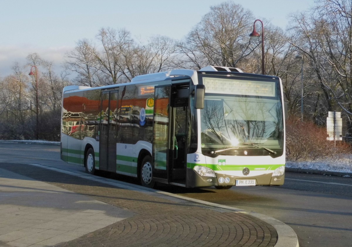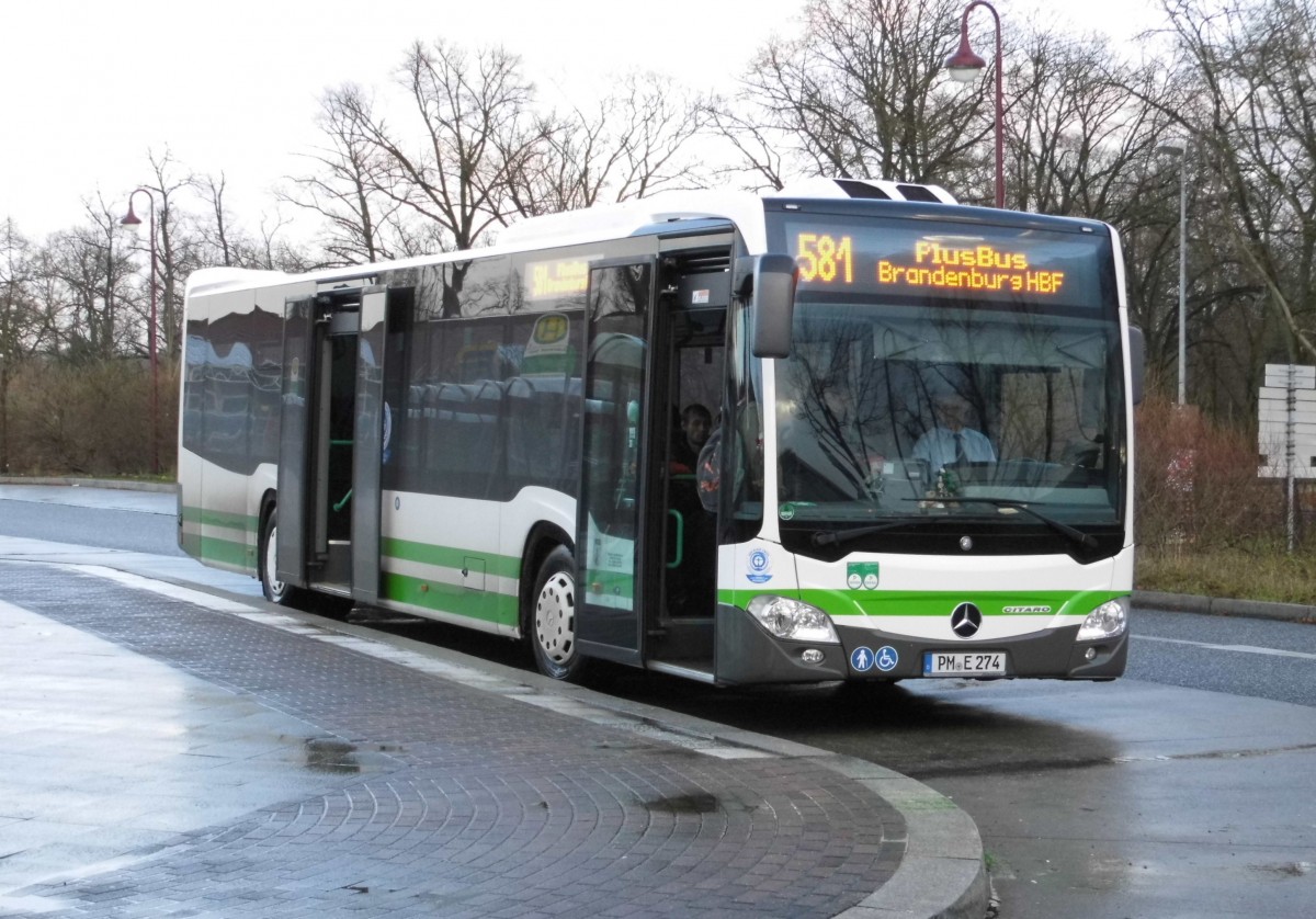 MB Citaro Facelift PM-E 214 auf PlusBus 581 nach Brandenburg am Bad Belziger Busbahnhof, 23.12.14 (PlusBus Hoher Fläming seit 14.12. Linien 553,580,581)