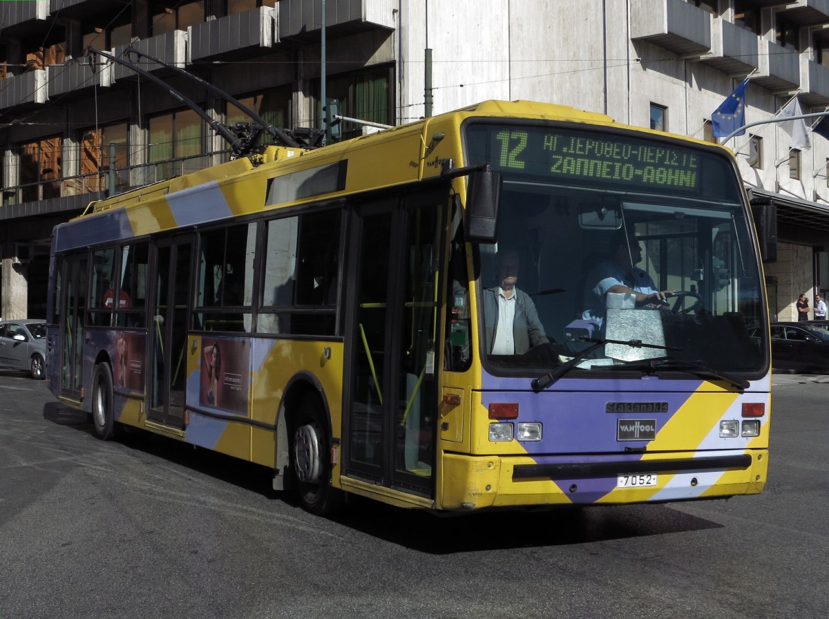 Griechenland / Athen: Oberleitungsbus Van Hool A 300 T - aufgenommen im Oktober 2014 in der Innenstadt von Athen.