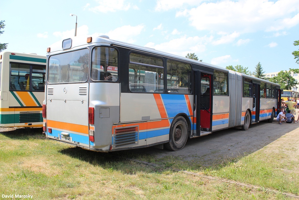 Ein ehemaliges Fahrzeug der Firma Wiebusch, ein MB O405G pausiert am 22. Mai 2014 vor dem Domstiftgut Klaistow.