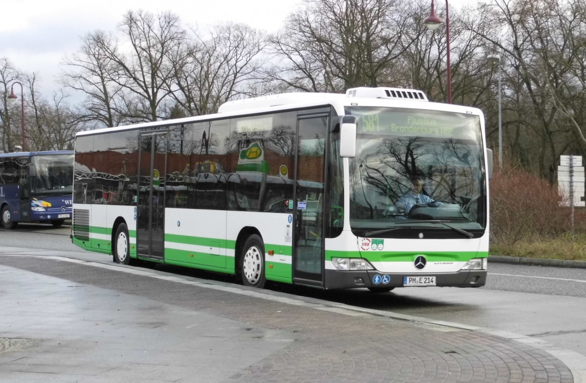 Der MB O 530 C2 K der VGB (PM-E 231) auf PlusBus 581 nach Brandenburg am Bad Belziger Busbahnhof, 26.12.14