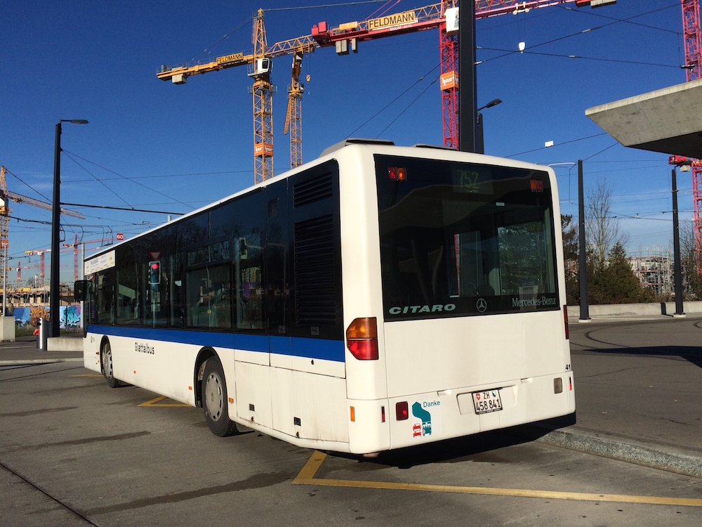 Mercedes Citaro Nr. 41 (1999) der VBG (Subunternehmer Maag Busbetrieb AG) am 23.12.2014 am Bahnhof Stettbach. Dieser Citaro ist einer der einzigen der Euro 2 Generation mit stehendem Motor in der Schweiz...