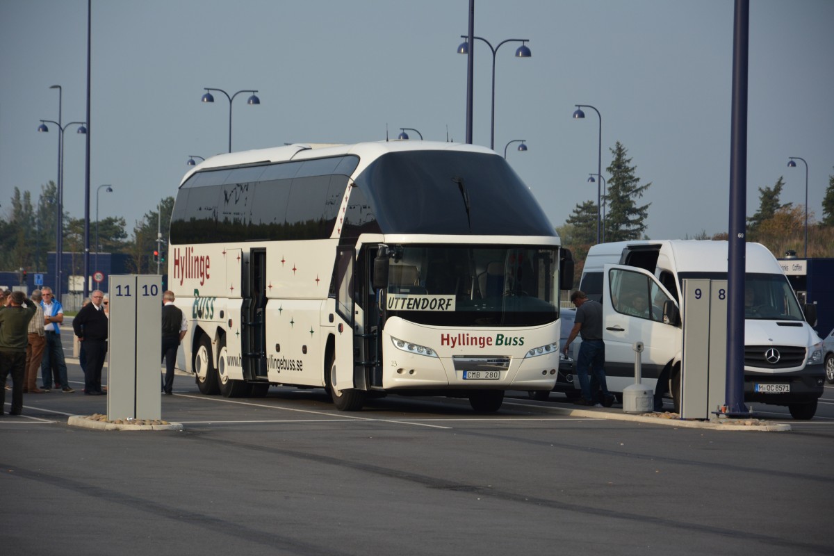 Neoplan Starliner mit dem Kennzeichen CMB 280. Aufgenommen am 20.09.2014 Gedser Hafen.