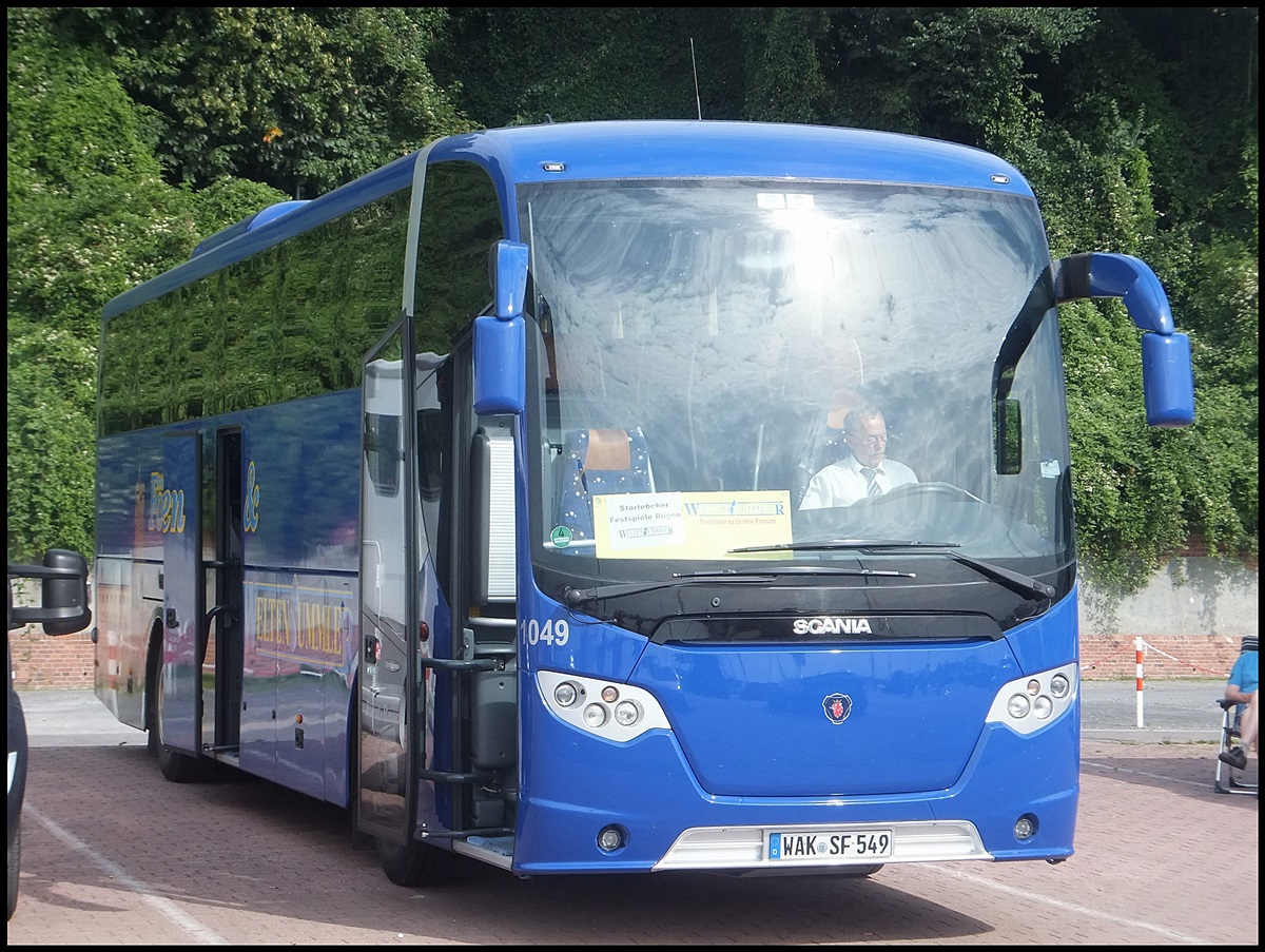 Scania OmniExpress von Först-Reisen/Weltenbummler aus Deutschland im Stadthafen Sassnitz am 18.08.2013