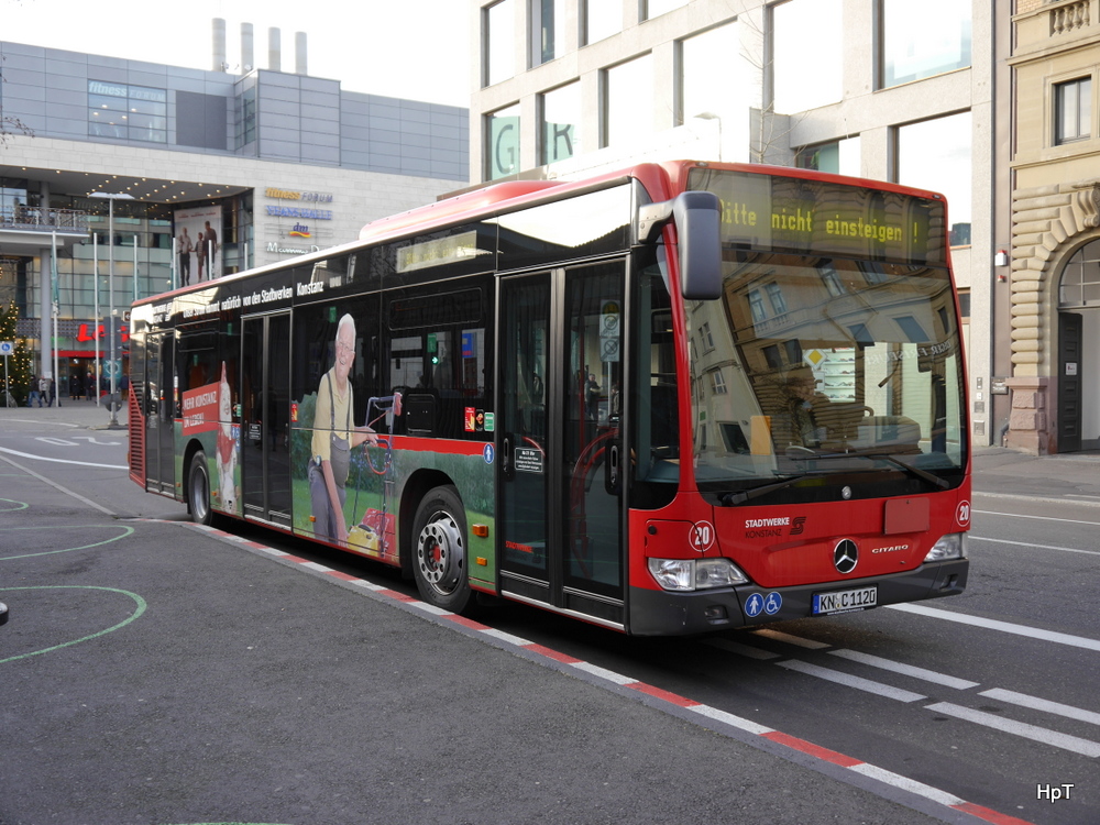 Stadtwerke Konstanz - Mercedes Citaro Nr.20 KN.C 1120 unterwegs auf der Linie ( Bitte nicht einsteigen !) in Konstanz am 13.12.2014