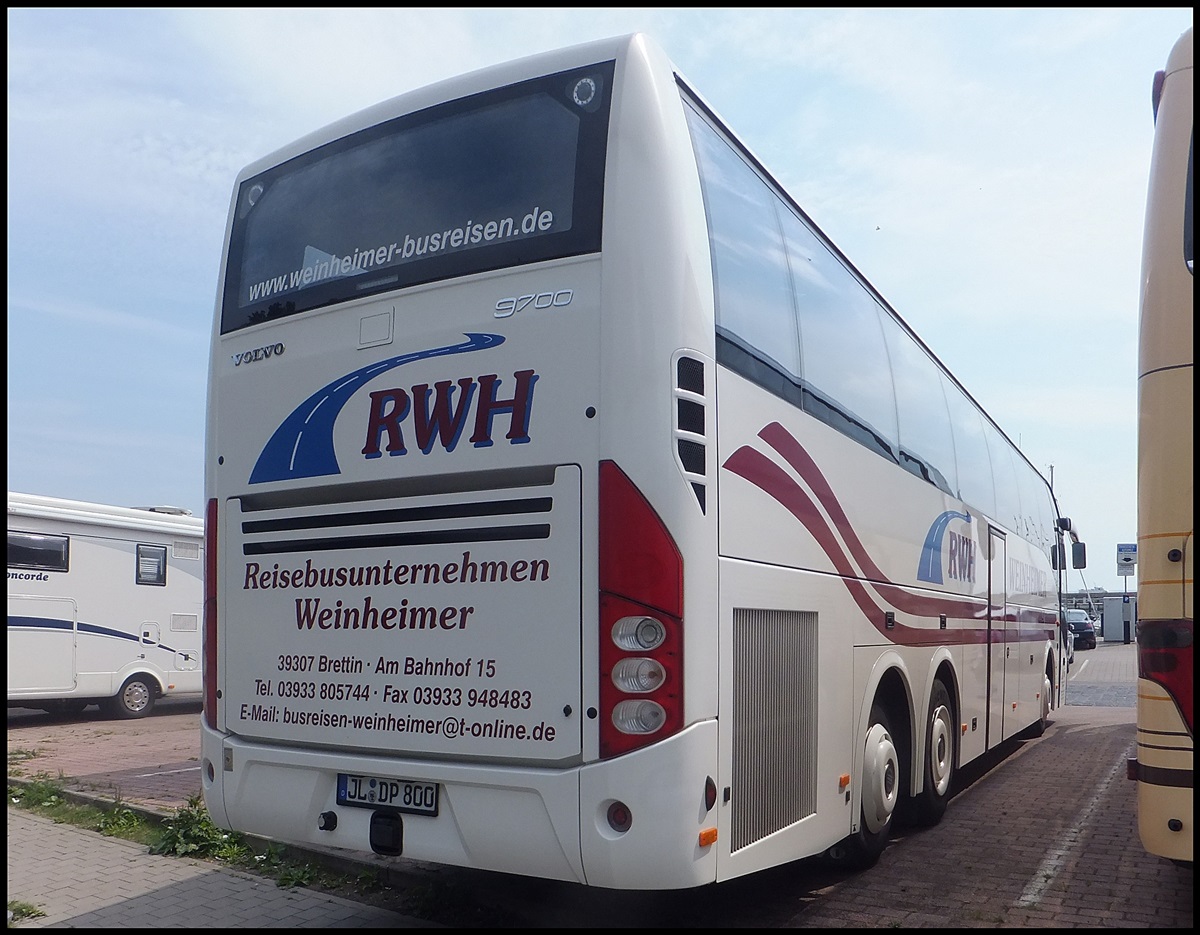 Volvo 9700 von Reisebusunternehmen Weinheimer aus Deutschland im Stadthafen Sassnitz am 17.08.2013