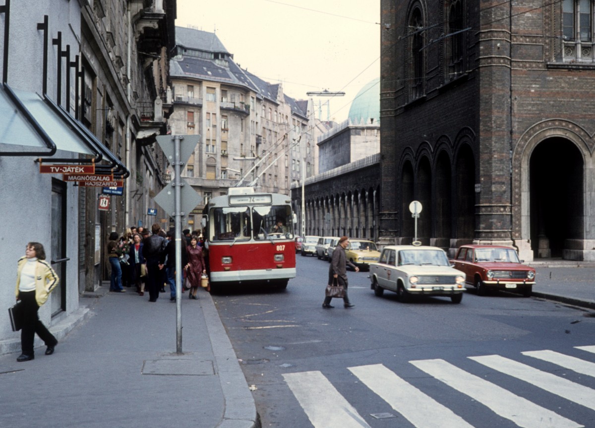tl Nr. 874 (Hess Swisstrolley 4 BGT-N2C) am 15.6.2014 auf der Grand-Pont. Die Linie 4 wurde bis anhin von 2-achsigen Stadnard-Trolleys bedient. Da diese Busse nicht niederflurig waren, werden nun Gelenkbusse eingesetzt, um dem Behinderten-Gleichstellungs-Gesetz Folge zu leisten.
