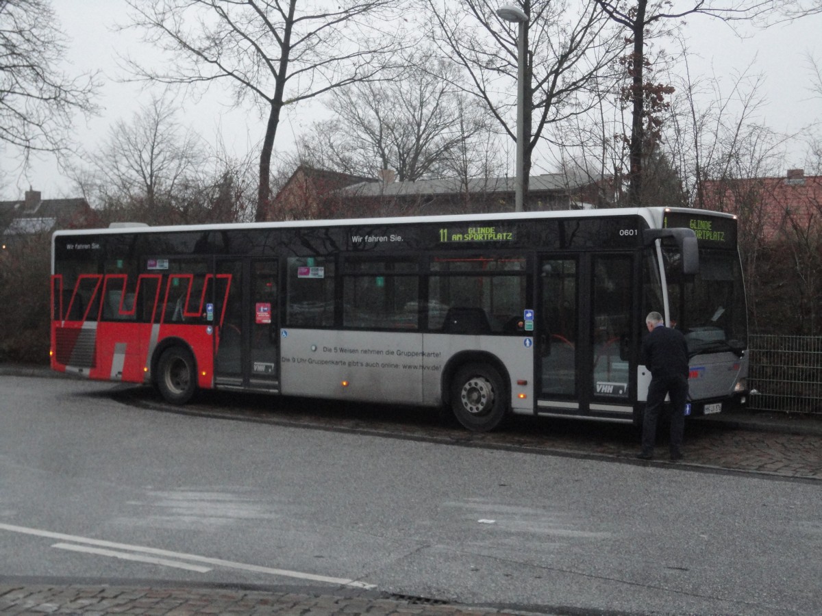VHH 0601 (HH-UX 1678) am 10.12.2012 auf der Bus-Linie 11, Pause am U-Bahnhof Steinfurther Allee