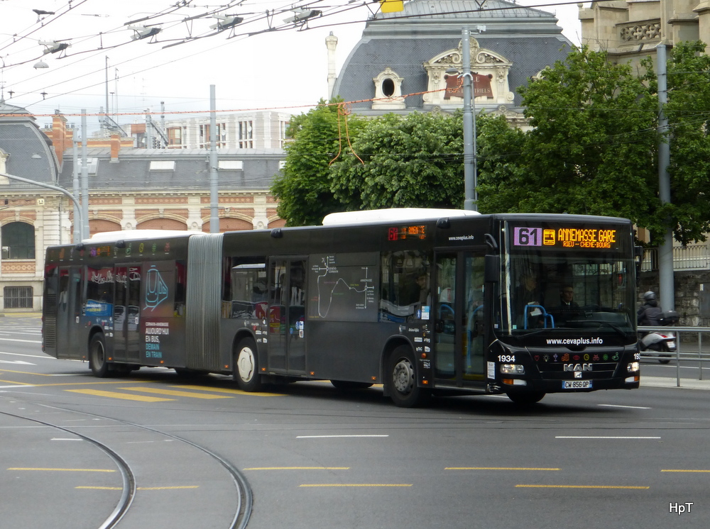 Genf - MAN Lion`s City Nr.1934 CW.856.QP unterwegs auf der Linie 61 in der Stadt Genf am 09.05.2014