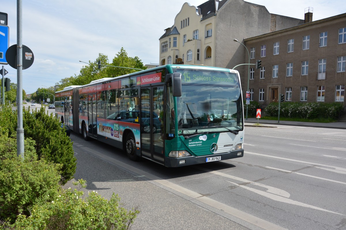 P-AV 943 auf der Linie X15 am Hauptbahnhof in Potsdam. Aufgenommen am 17.05.2014.