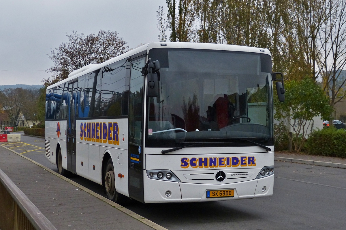 . SK 6800 Mercedes Benz Intouro des Busunternehmens Schneider aus Kehmen, aufgenommen am 06.11.2014 am Bahnhof in Ettelbrück.