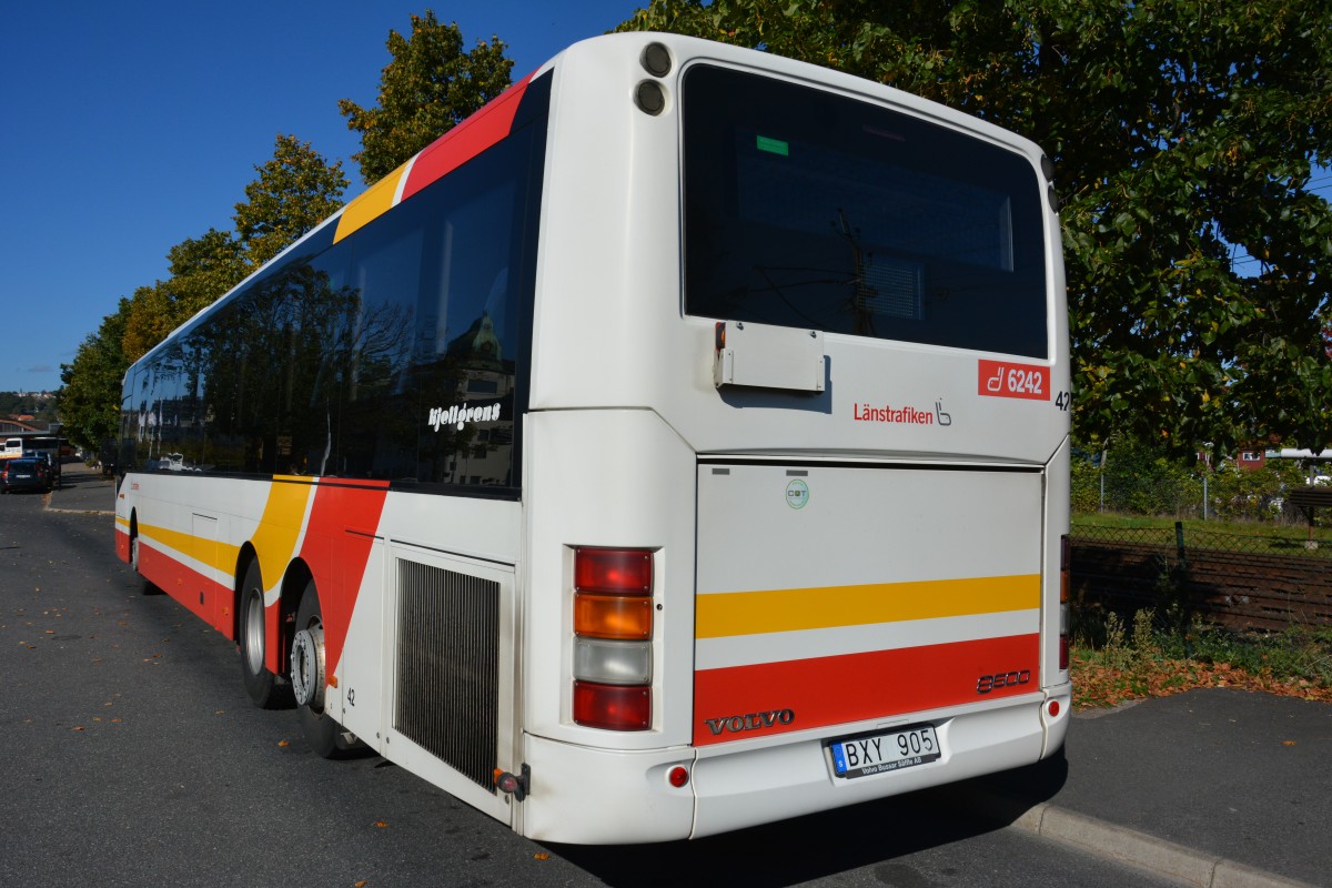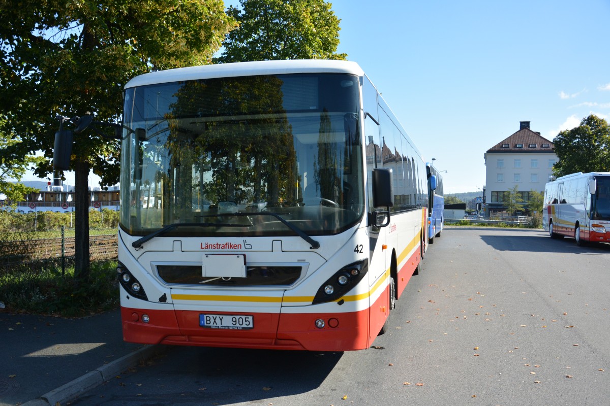 BXY 905 ist in meinen Augen ein VOLVO 8900. Kurioserweise steht aber hinten das es ein Volvo 8500 ist. Die Front sagt aber was anderes. Aufgenommen am 15.09.2014 Jönköping Bahnhof.
