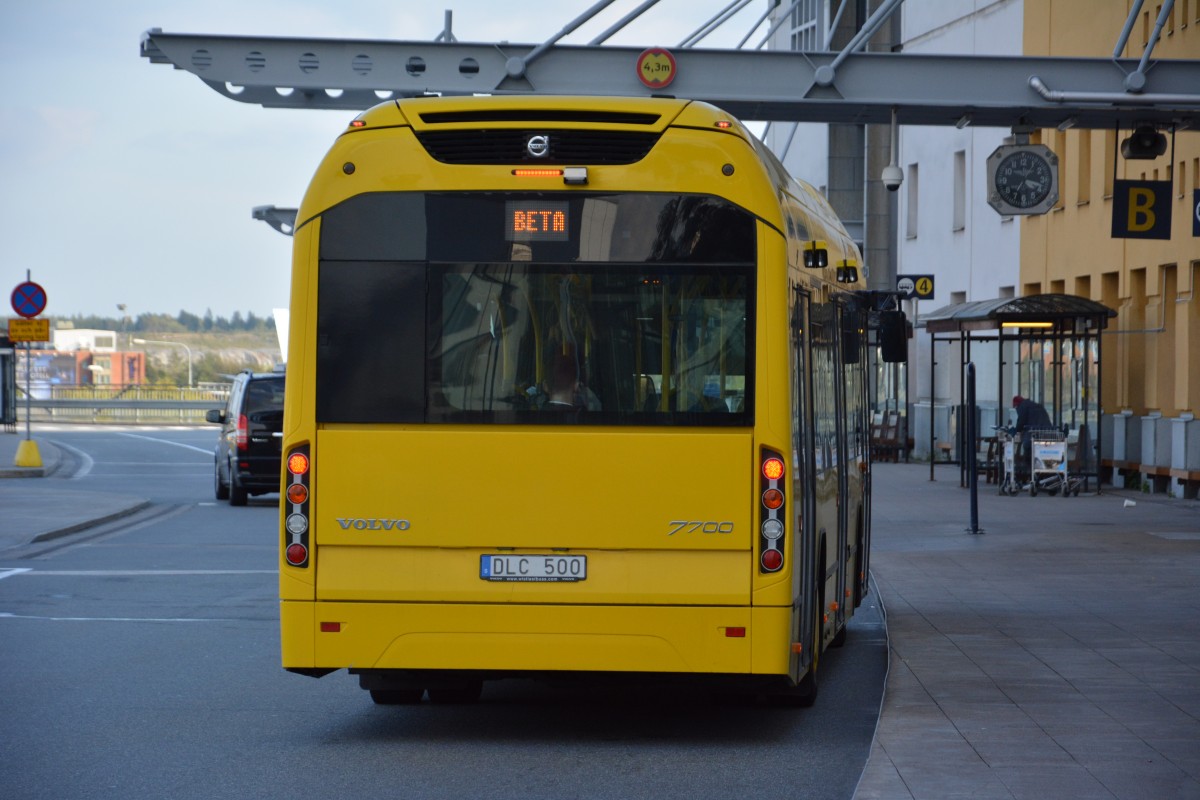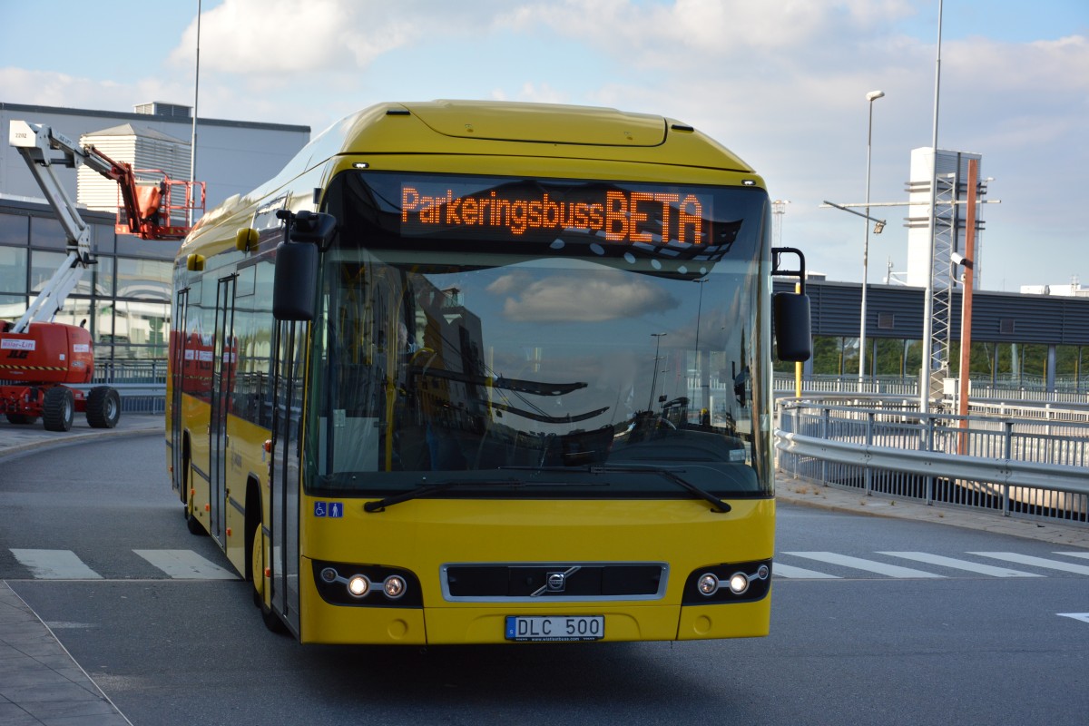 DLC 500 (Volvo 7700 Hybrid) auf den Weg zum Parkplatz am Flughafen Stockholm Arlanda. Aufgenommen am 13.09.2014.