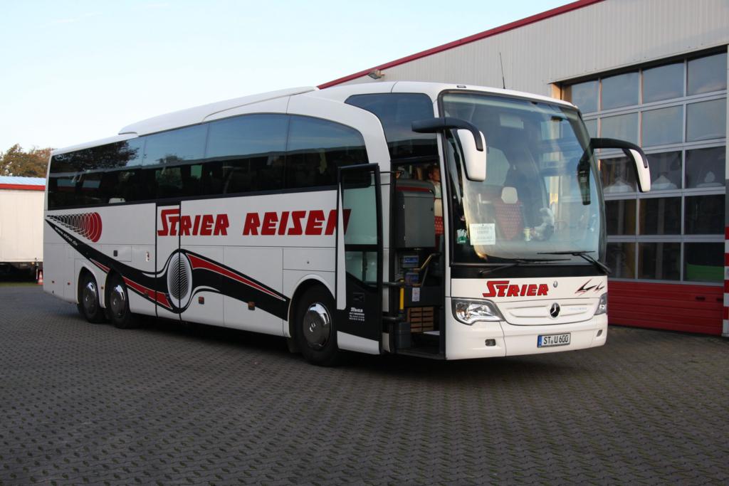 Mercedes Benz Reisebus Travego der Fa. Strier am 26.10.2014 auf dem Betriebshof in Ibbenbüren.