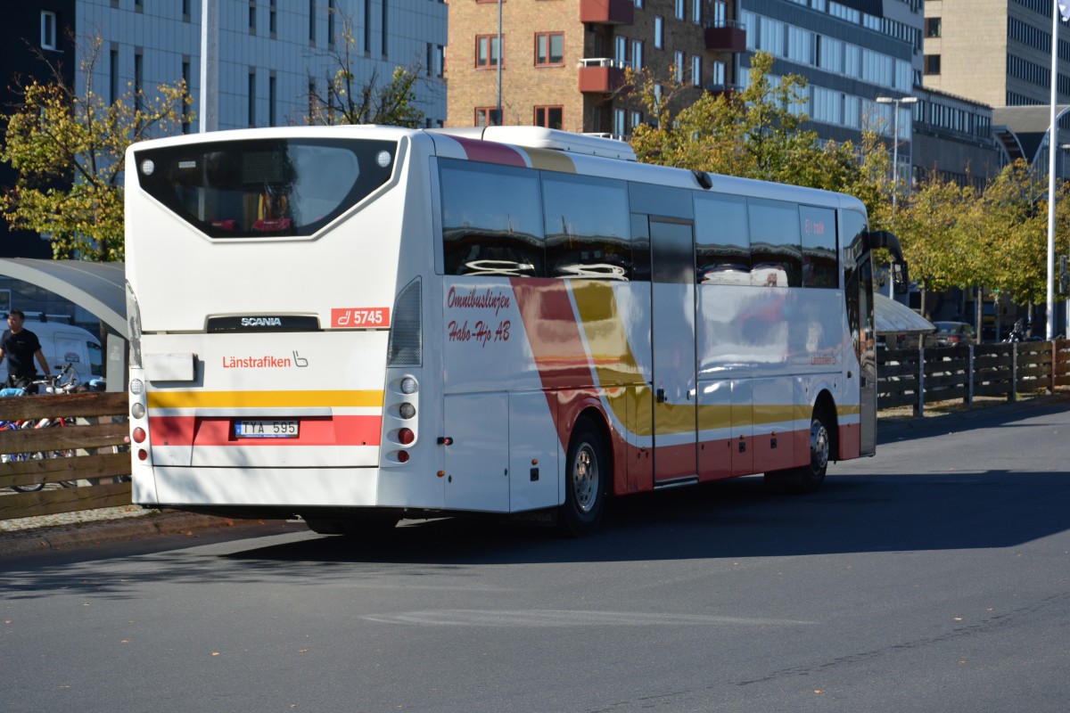 Ein für mich unbekannter Scania Bus. HGD 870 auf Shuttlefahrt zwischen Hotel und Flughafen Stockholm Arlanda. Aufgenommen am 13.09.2014.