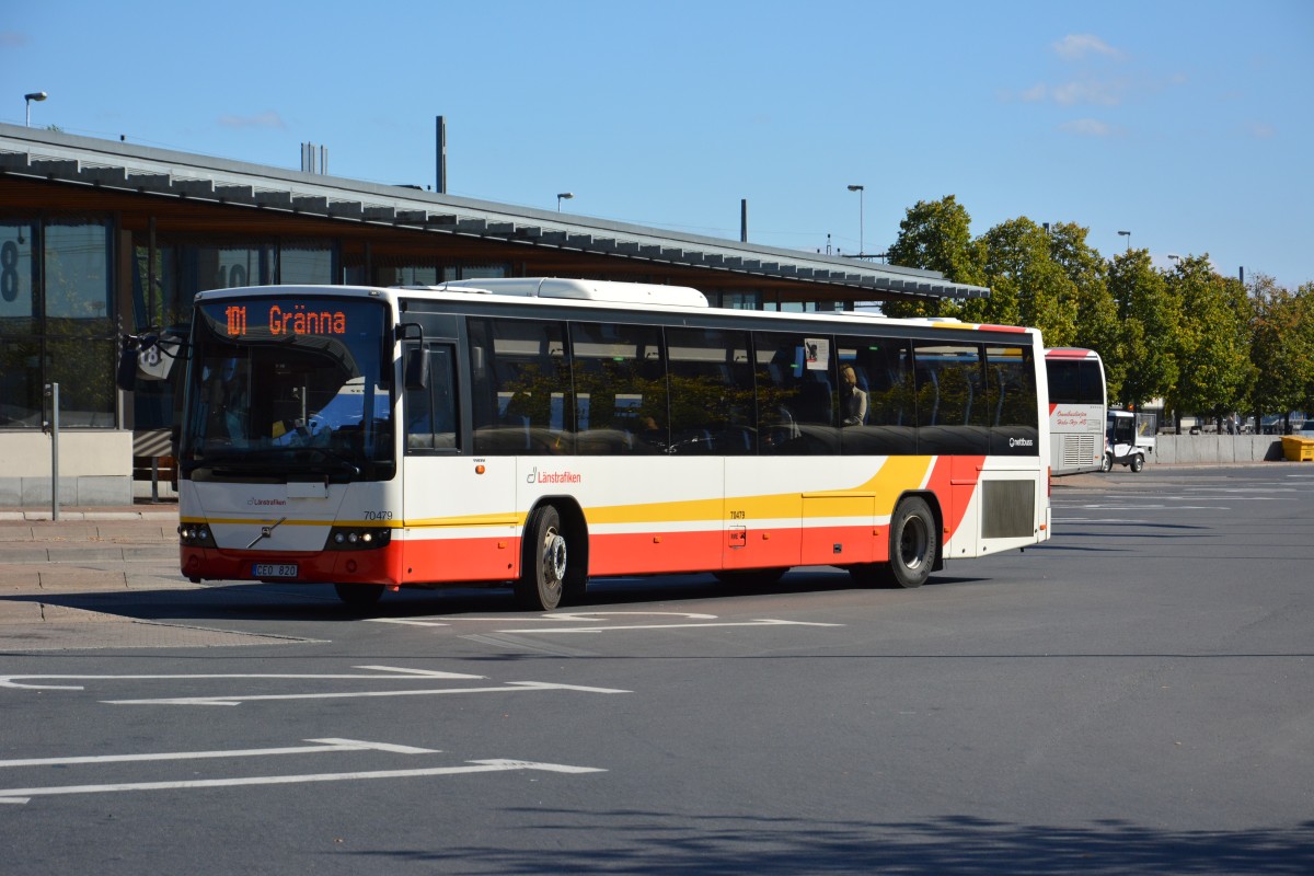 Volvo 8700 mit dem Kennzeichen CEO 820 auf der Linie 101 nach Gränna. Aufgenommen am Bahnhof Jönköping am 15.09.2014.