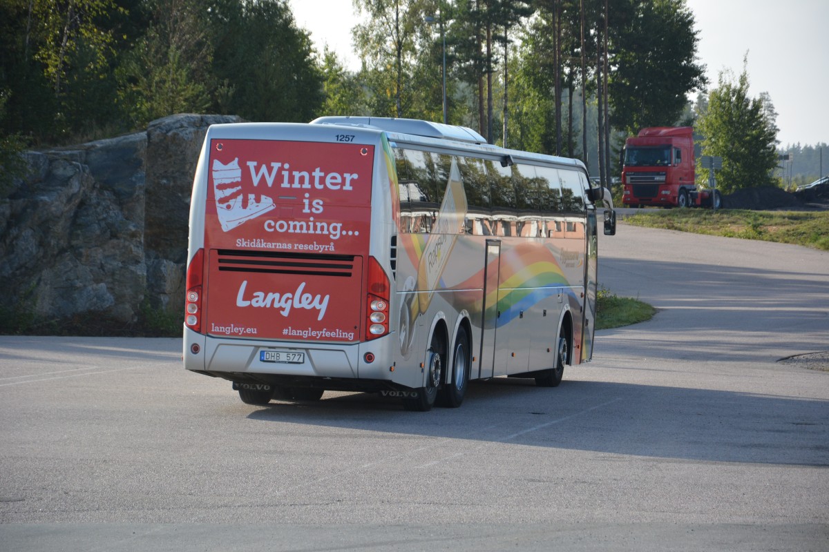 Volvo 9700 mit dem Kennzeichen DHB 577 fährt vom Flughafen Stockholm-Skavsta nach Stockholm City. Aufgenommen am 14.09.2014.