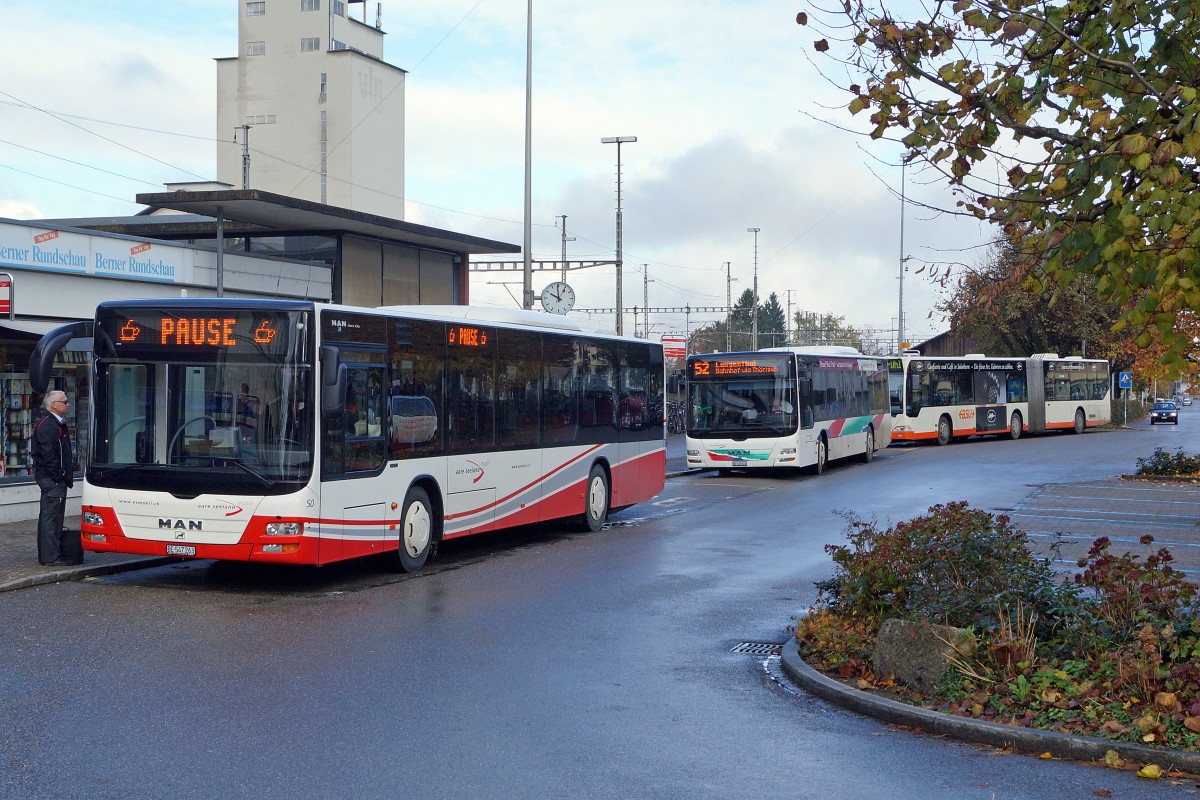 ASm: MAN-Linienbus 43 noch mit alter Lackierung auf dem Bahnhofplatz Herzogenbuchsee am 13. November 2014.