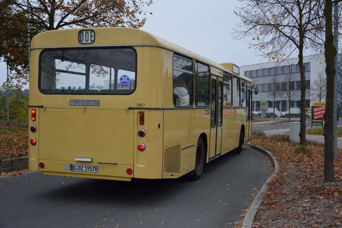 B-BZ 1957H auf alter Linie E unterwegs. Aufgenommen am 09.11.2014 Albert-Einstein-Ring Kleinmachnow. Zu sehen ist ein Büssing E2H.