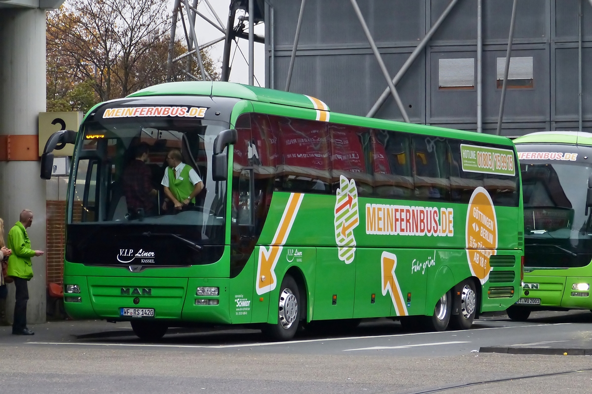 Ein MAN Lions Coach C von Mein Fernbus (Fa.Wunder, Hollfeld) am Berliner ZOB, 23.11.14