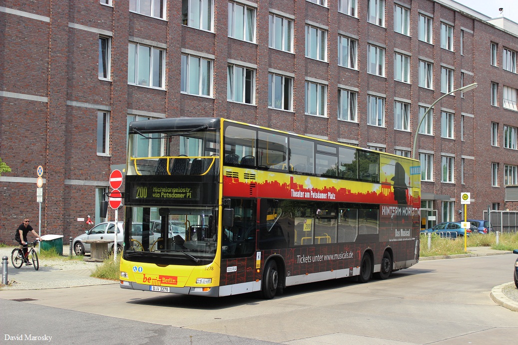 14.02.2014, Berlin - Hertzallee. Ein MAN Lionscity DD (3278) auf der Linie 200.