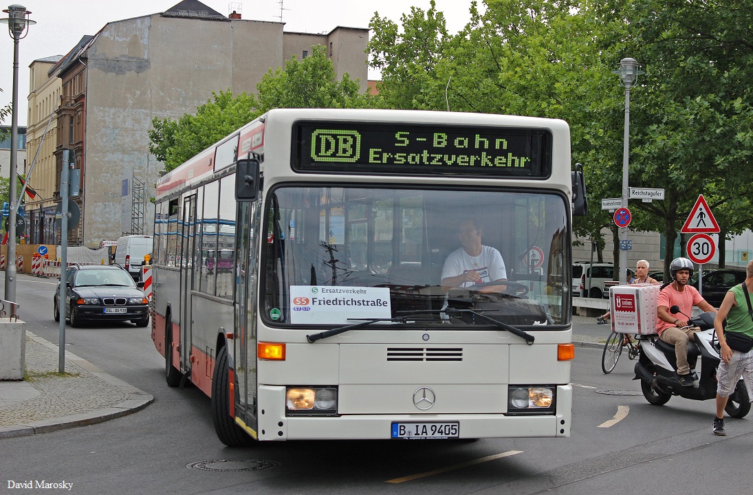 Der O405N2 (ex HHA Schnellbus) von Firma G.L.O. Bus Jörg Schirrmeister & Aleksander Myslowitch G.D.R. mit der Wagennummer 9405 im Auftrag der Firma Dreyer auf dem Stadtbahn-SEV. Am 20.07.2014 am Reichstagufer, Bhf. Friedrichstraße aufgenommen.