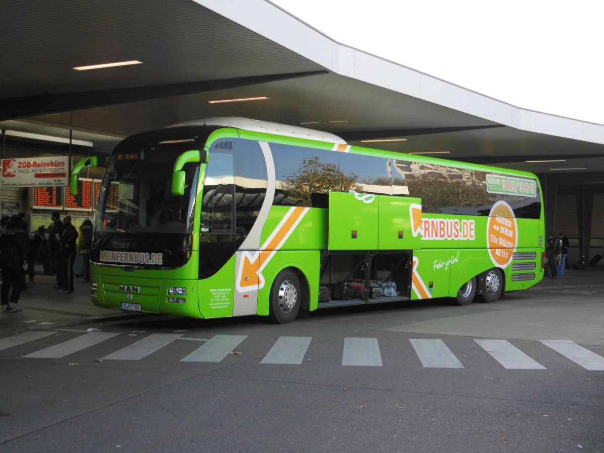 Ein MAN Lions Coach L von Mein Fernbus (Fa.Wörlitz Tourist) nach Erfurt am Berliner ZOB, 23.11.14