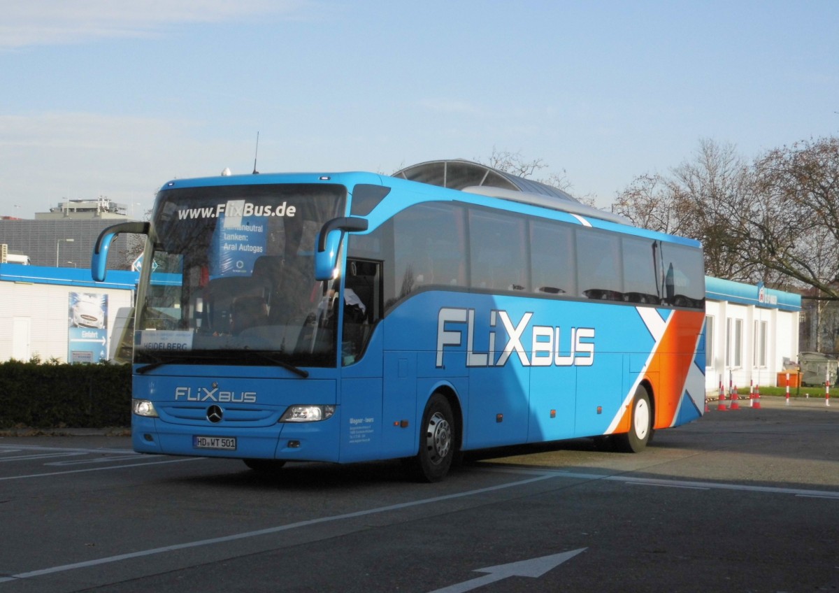 Ein MB Tourismo von Flixbus (Fa.Wagner-Tours) nach Heidelberg am Berliner ZOB, 23.11.14