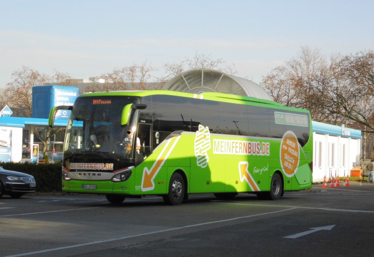 Ein Setra S 516 HD von Mein Fernbus (Fa.Alois Pfeffer, Zenting) auf Linie 41 nach Passau am Berliner ZOB, 23.11.14