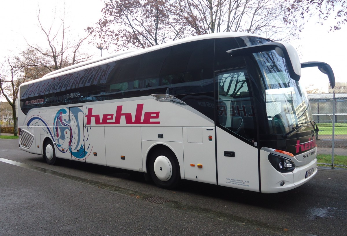 Ein Setra S 517 HD von Firma Blaguss aus Ungarn auf dem Busparkplatz vom Berliner ZOB am 23.11.14