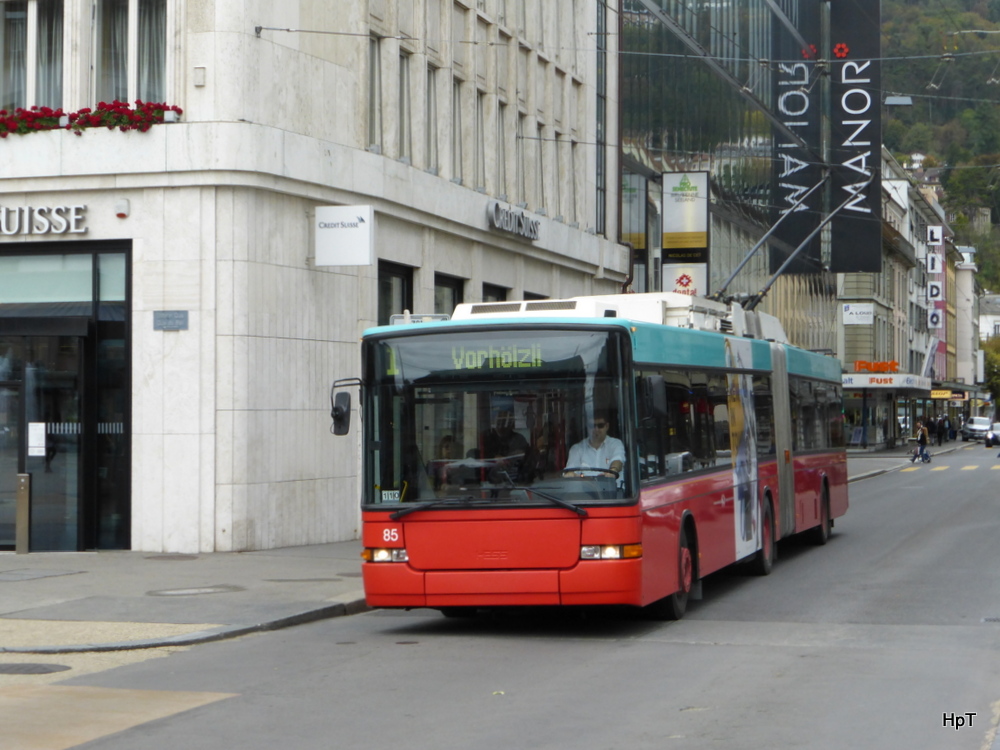 VB Biel - NAW Trolleybus Nr.85 unterwegs auf der Linie 1 in der Stadt Biel am 16.10.2014