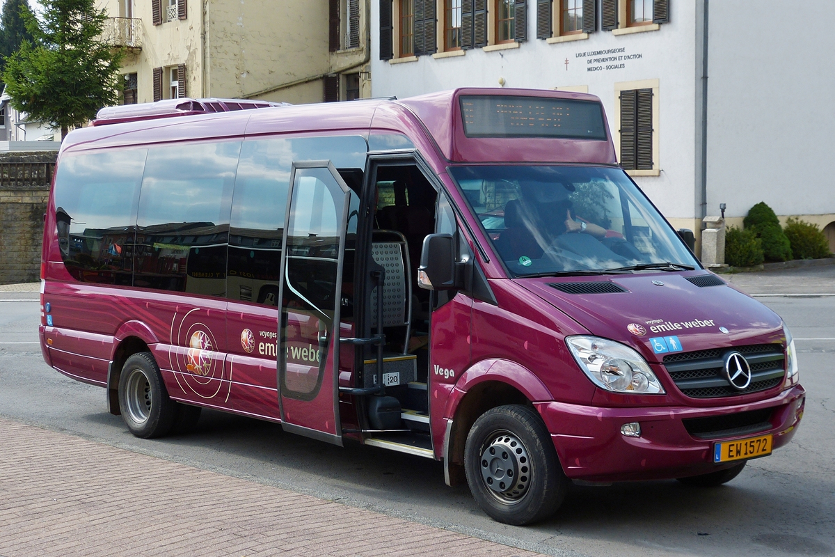 . EW 1572, Mercedes Benz Kleinbus von Emile Weber, aufgenommen am 02.09.2014 beim Bashnhof in Mersch. Gruß an die freundliche Busfahrerin.