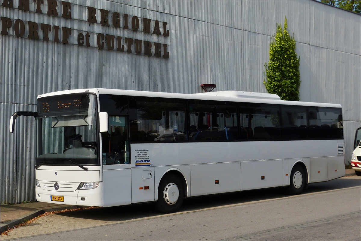 . MN 1013 Mercedes Benz Integro von Müller-Nies-Reisen aus Schengen wartet in Grevenmacher auf seinen nächsten Einsatz. 02.09.2014