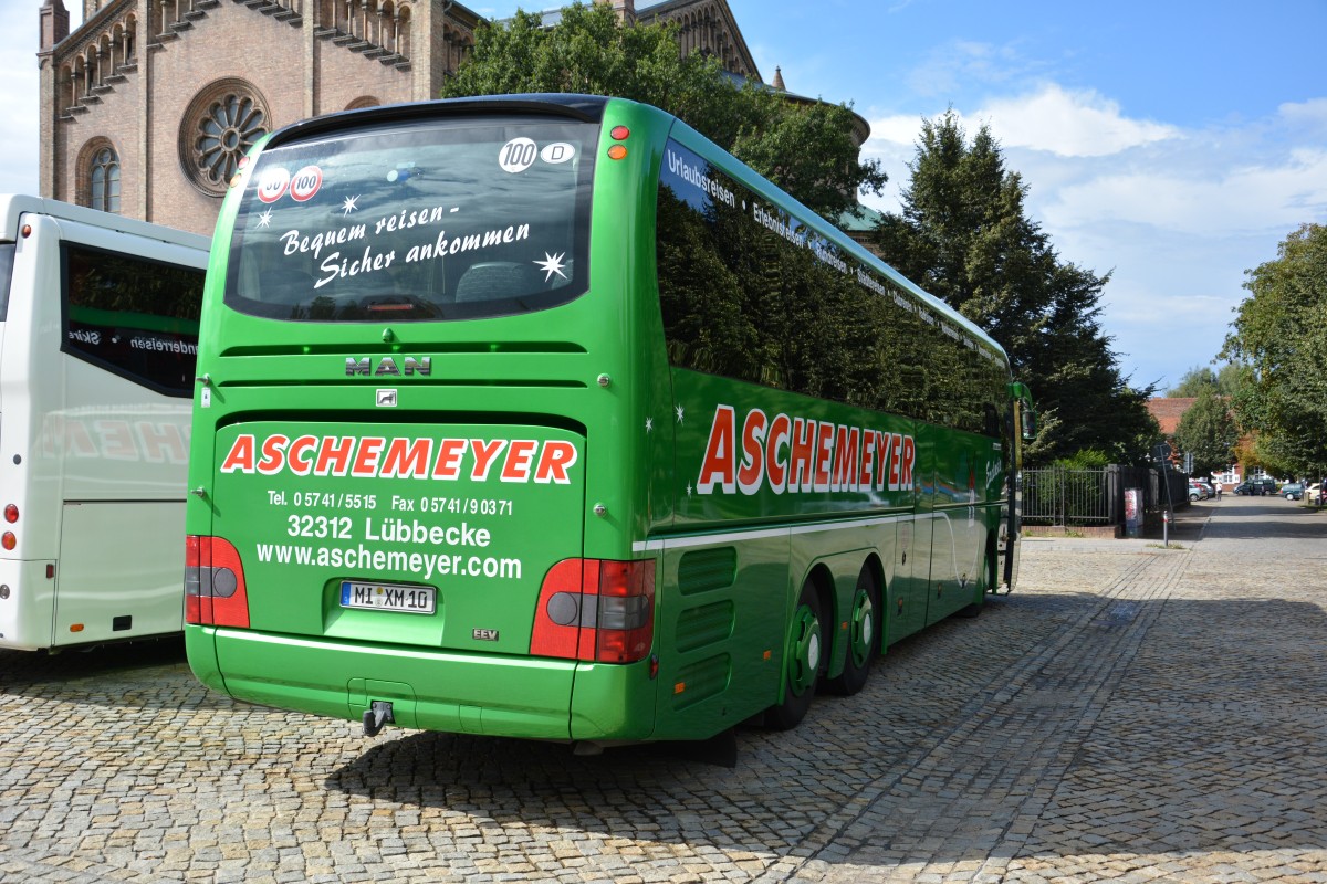 Aus Minden (MI-XM 10) kommt dieser MAN und steht am 16.08.2014 auf dem Bassinplatz von Potsdam.