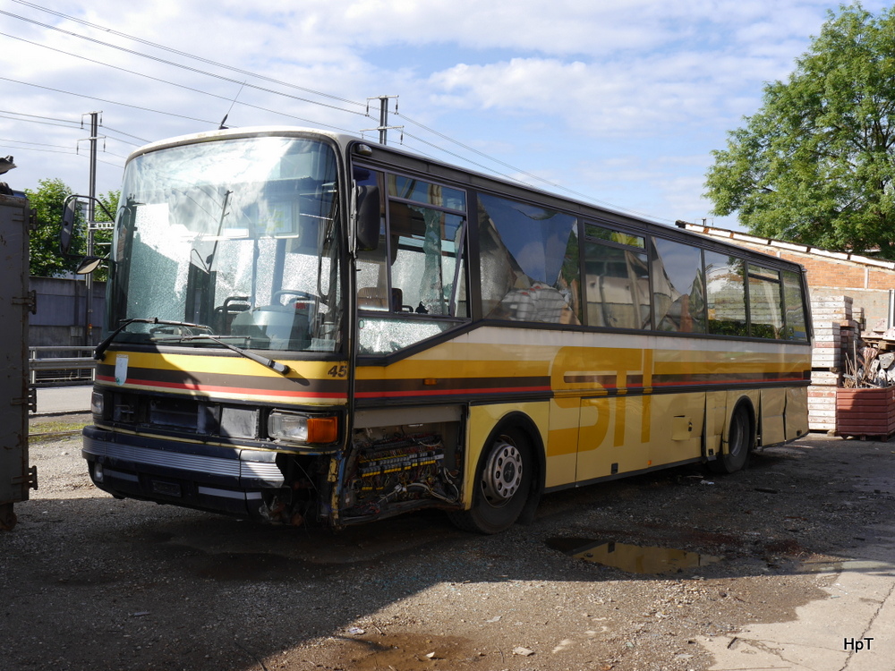 ex STI Setra S 213 UL Nr.45 bei einem Alteisenhändler in Rothrist am 24.08.2014