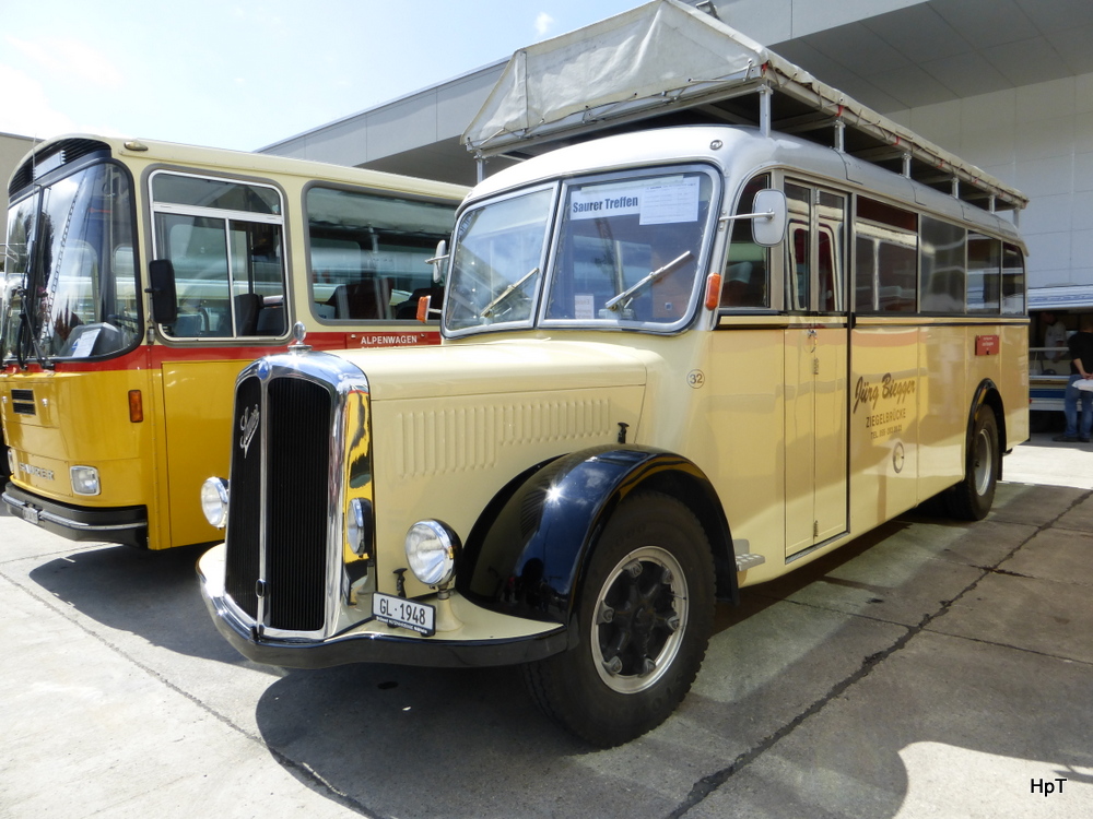 Saurer N2C Reisebus ausgestellt auf dem Areal des Camus Sursee am Saurer Treff am 30.08.2014