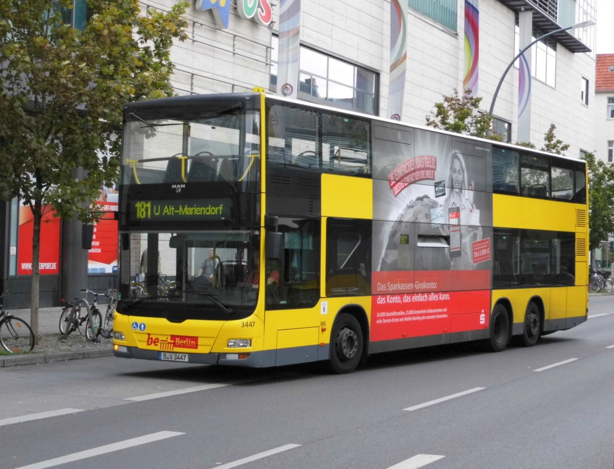 Man Lions City DD - BVG Wagen 3447 als 181 U Alt-Mariendorf am 30.08.14 am U-Bhf. W.-Schreiber-Platz