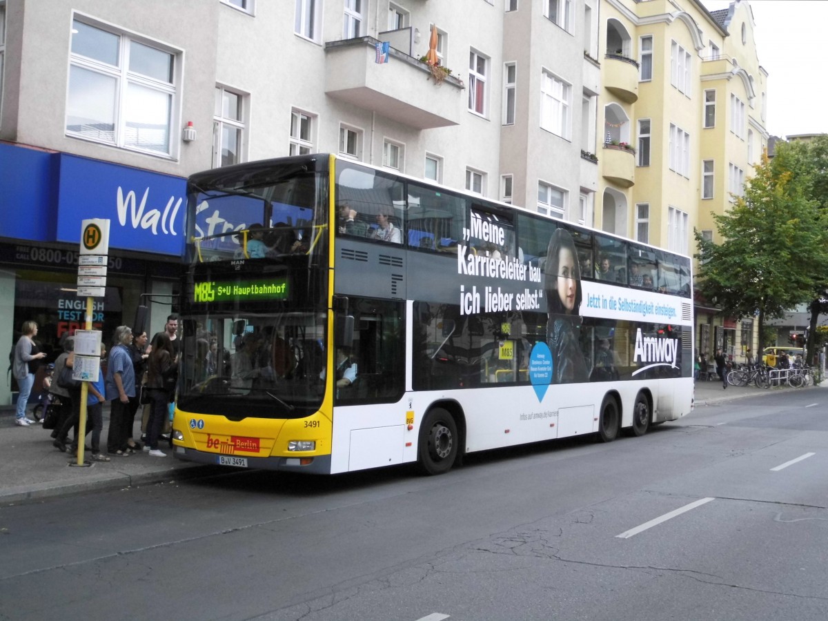 Man Lions City DD - BVG Wagen 3491 als M85 S+U HBF am 30.08.14 am U-Bhf. Walter-Schreiber-Platz