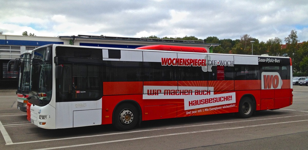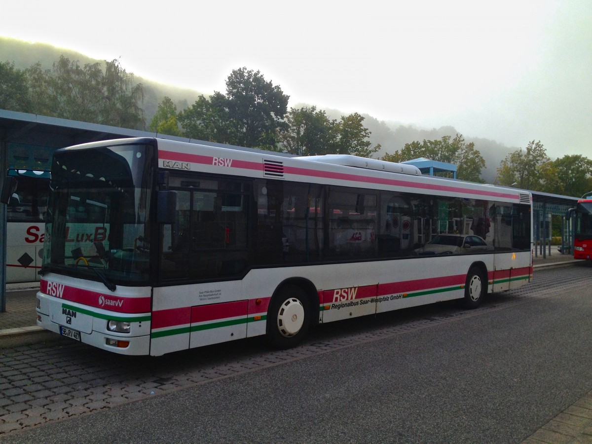 MAN Lions City Ü von Saar-Pfalz-Bus (SB-RV 427) in Merzig am Bahnhof. Aufgenommen am 02.09.2014.