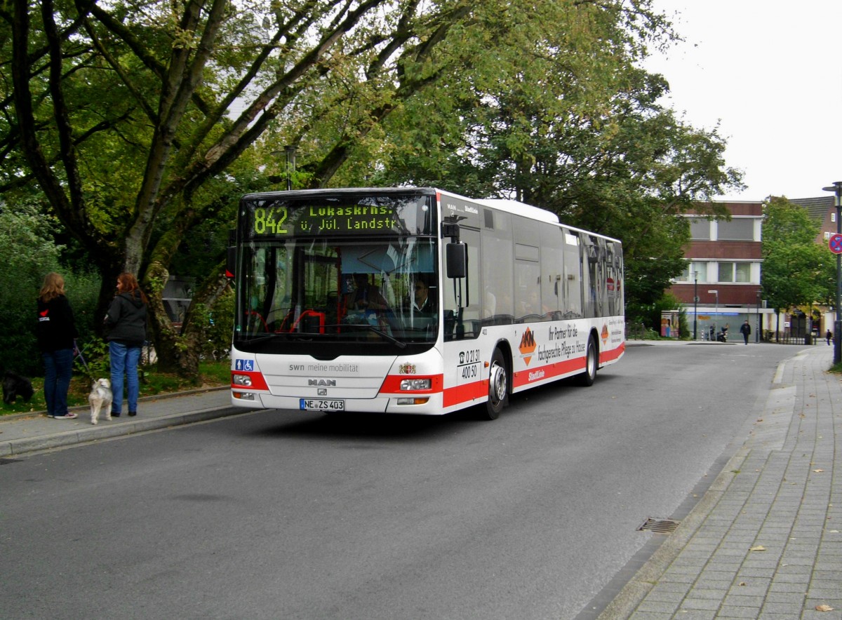 MAN Niederflurbus 3. Generation (Lion's City) auf der Linie 842 nach Neuss Lukaskrankenhaus an der Haltestelle Neuss Niedertor.(10.9.2014)