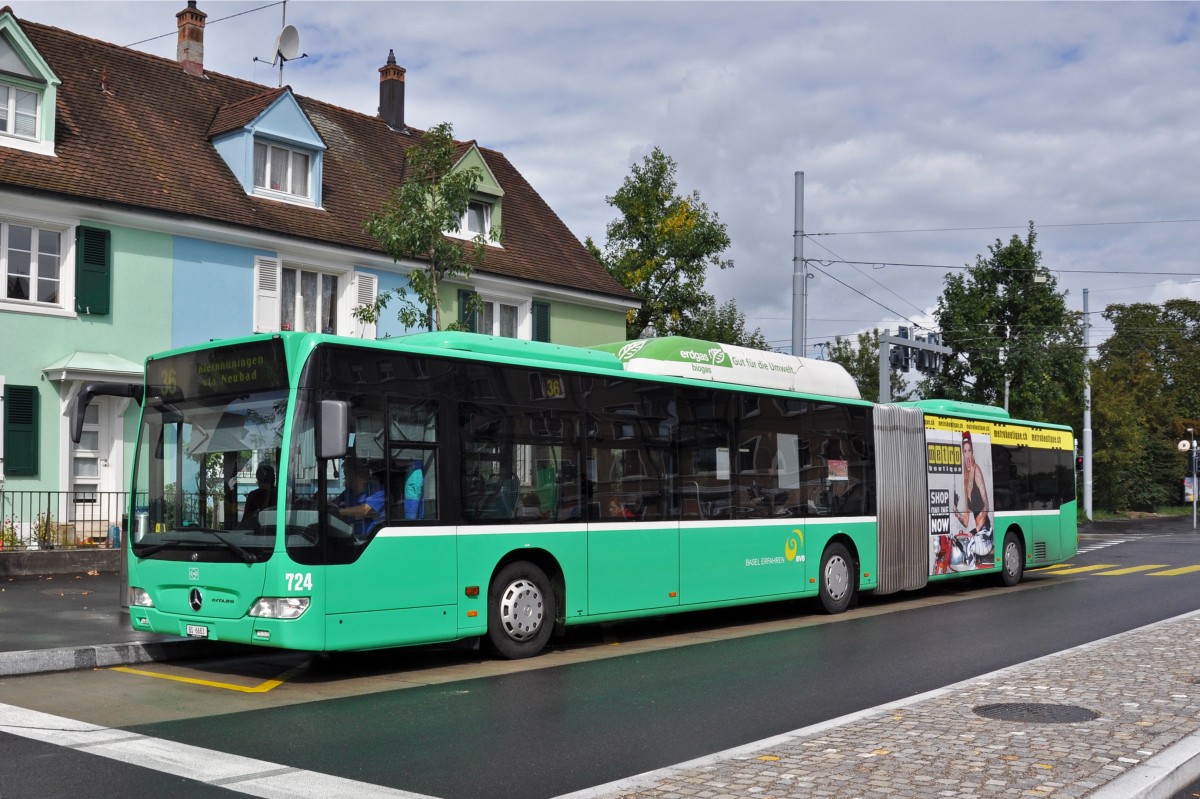Mercedes Citaro 727 fährt zur Haltestelle der Linie 36 am Badischen Bahnhof. Die Aufnahme stammt vom 08.09.2014.
