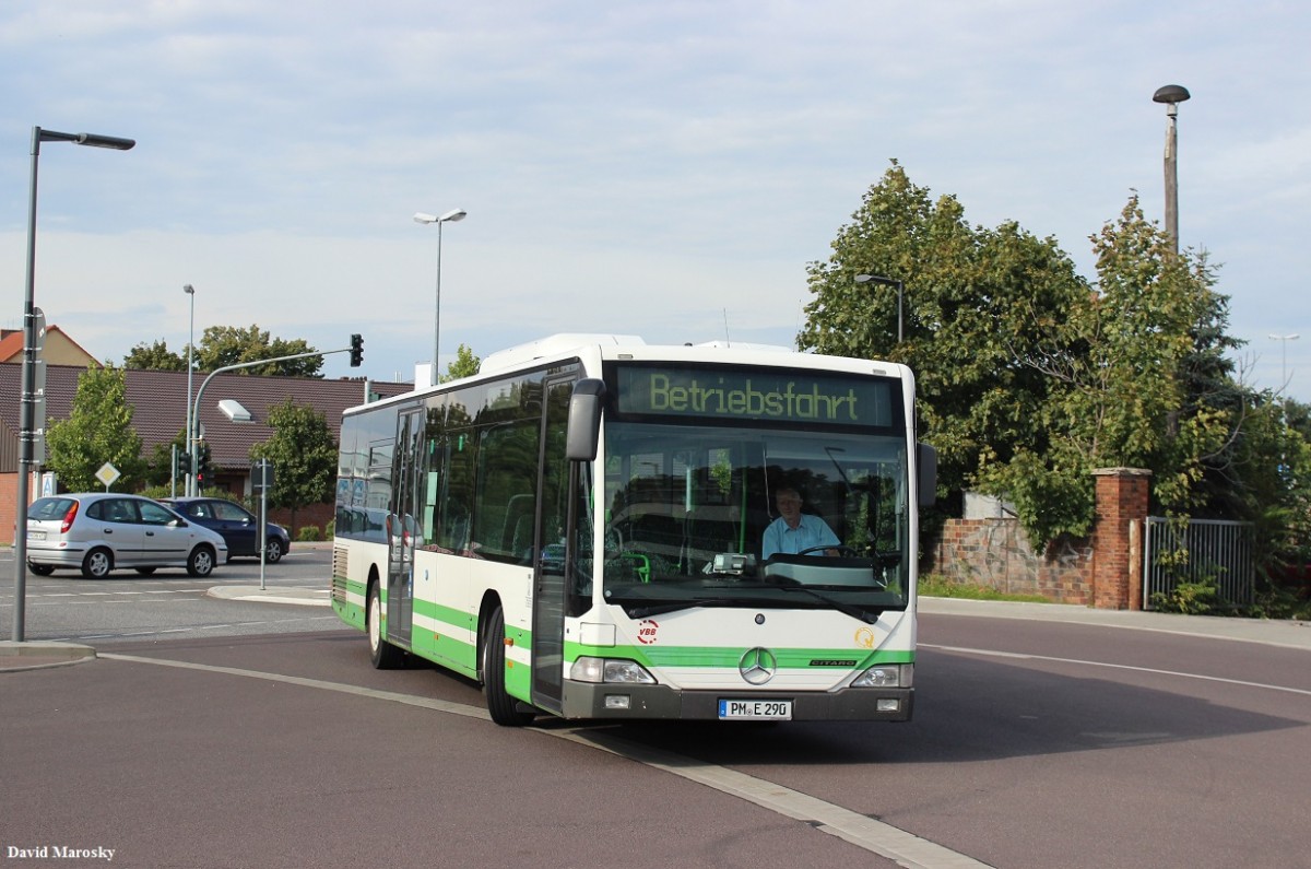 Der PM-E 241 ist der erste MB O 530 C2 Gelenkbus der VGB, der mit einem weiteren die 2 letzten MB O 405 GNÜ der VGB ersetzt hat. Hier am Bad Belziger Busbahnhof als 580 zum Betriebshof am 8.9.2014