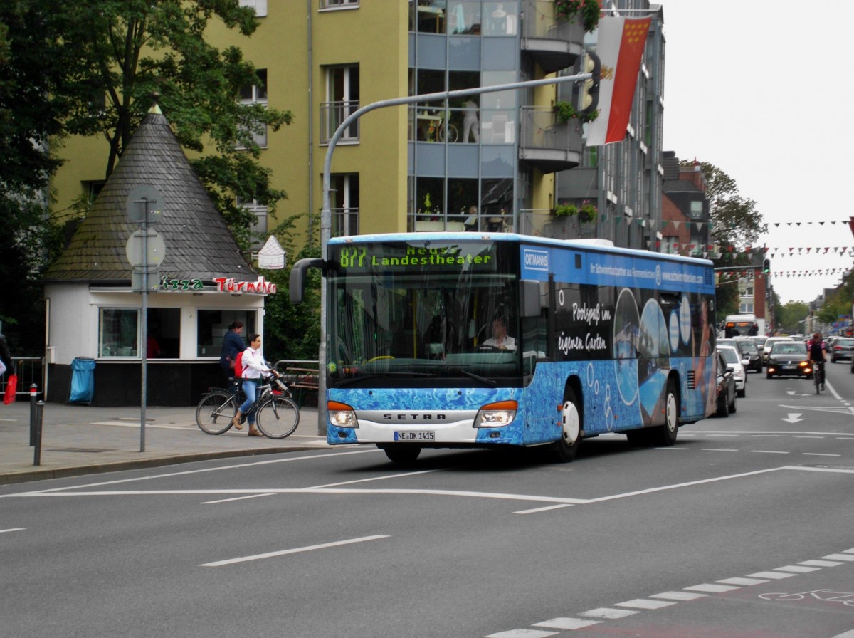 Setra S 400er-Serie NF (Multi Class) auf der Linie 877 nach Neuss Landestheater an der Haltestelle Neuss Zolltor.(10.9.2014)