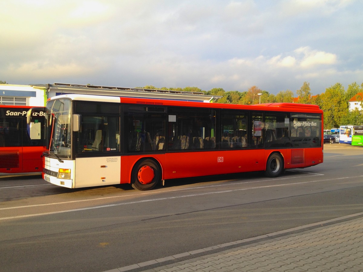 Mercedes-Benz O 405N1 von Walfried Munz GmbH, der für Saar-Pfalz-Bus unterwegs ist. Unverkennbar ein ehemaliger Wagen der Verkehrsbetriebe Hamburg Holstein AG. Aufgenommen am Bahnhof St. Ingbert am 09.09.2014.