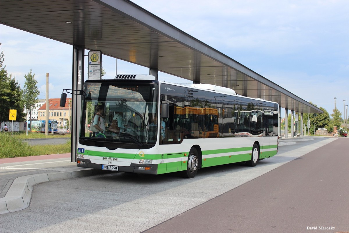 22.08.2014 Brandenburg, Hauptbahnhof ein Exot im Fuhrpark der VGBelzig ist dieser MAN Lion`s City welcher auf PM-E298 hört.