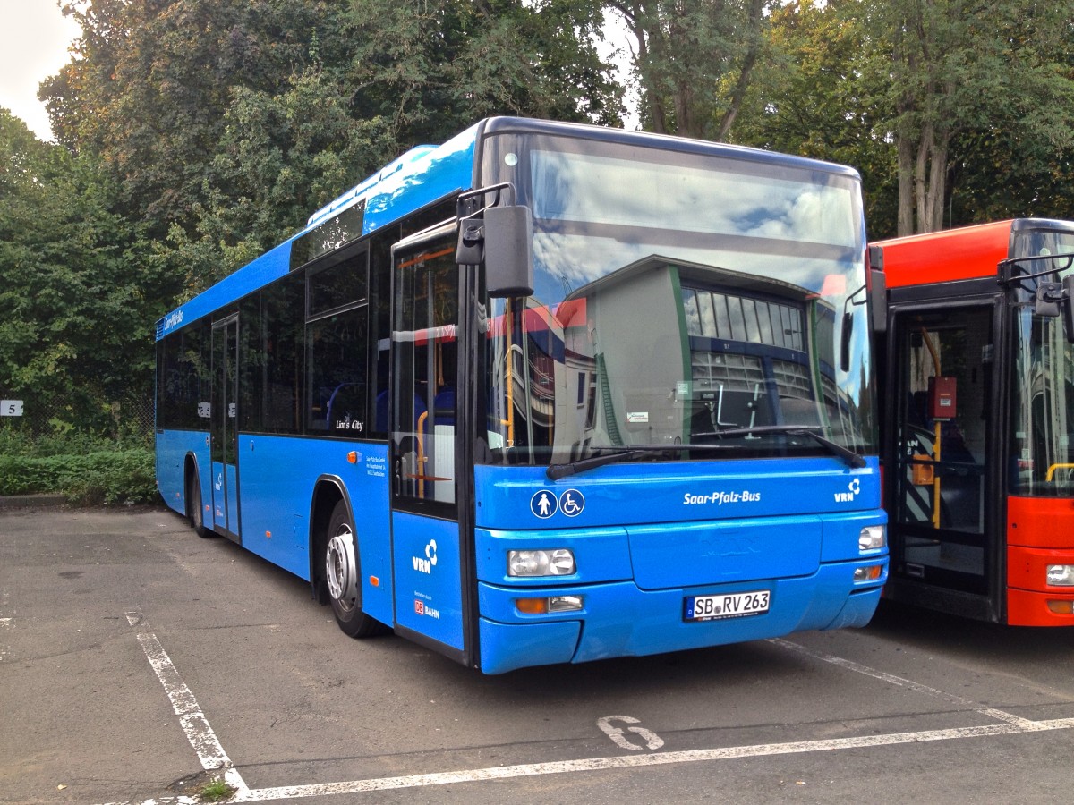 MAN Lions City Ü (SB-RV 509) von Saar-Pfalz-Bus. Baujahr 2010, aufgenommen am 18.09.2014 auf dem Betriebshof der WNS in Kaiserslautern.