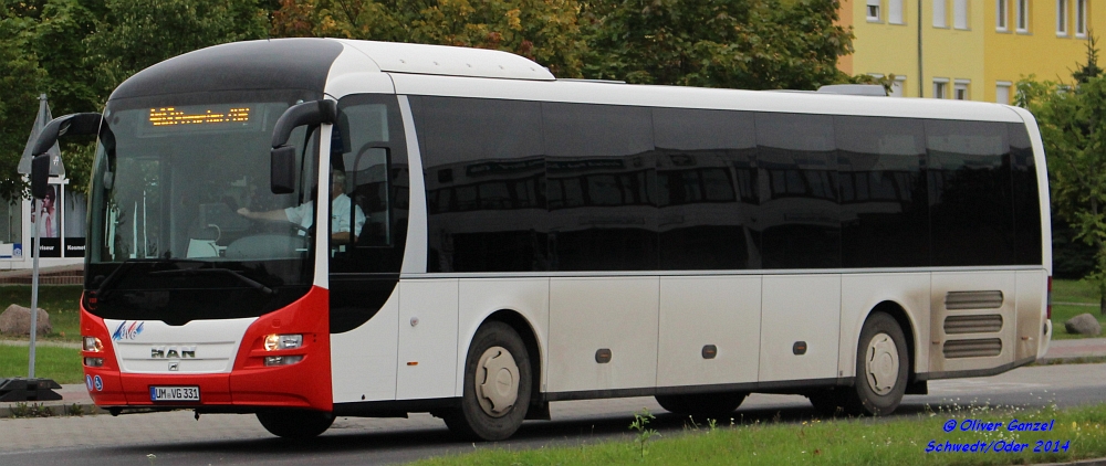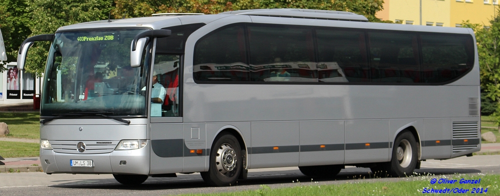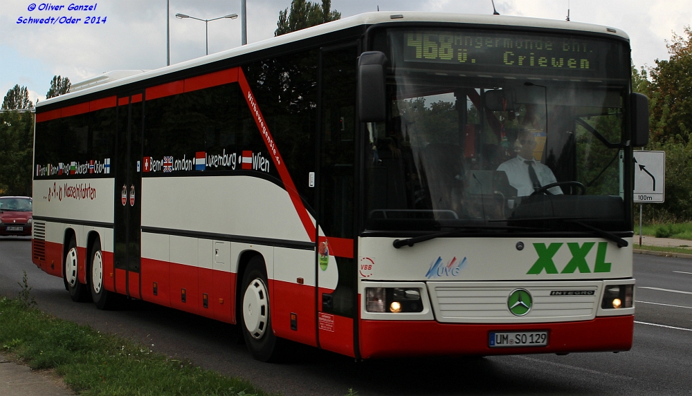 Mercedes-Benz O550 Integro, Wagennummer 407, der Uckermärkischen Verkehrsgesellschaft mbH, 2014 in Schwedt/Oder.